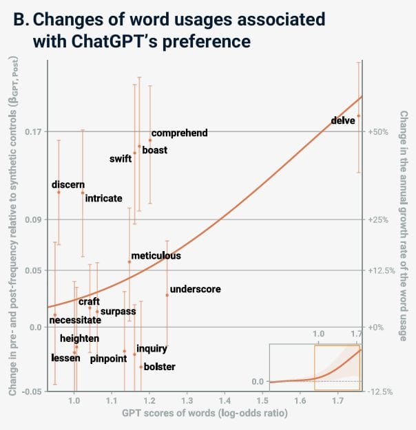 The paper found a "measurable and abrupt increase" in the use of words preferentially generated by ChatGPT after its release.